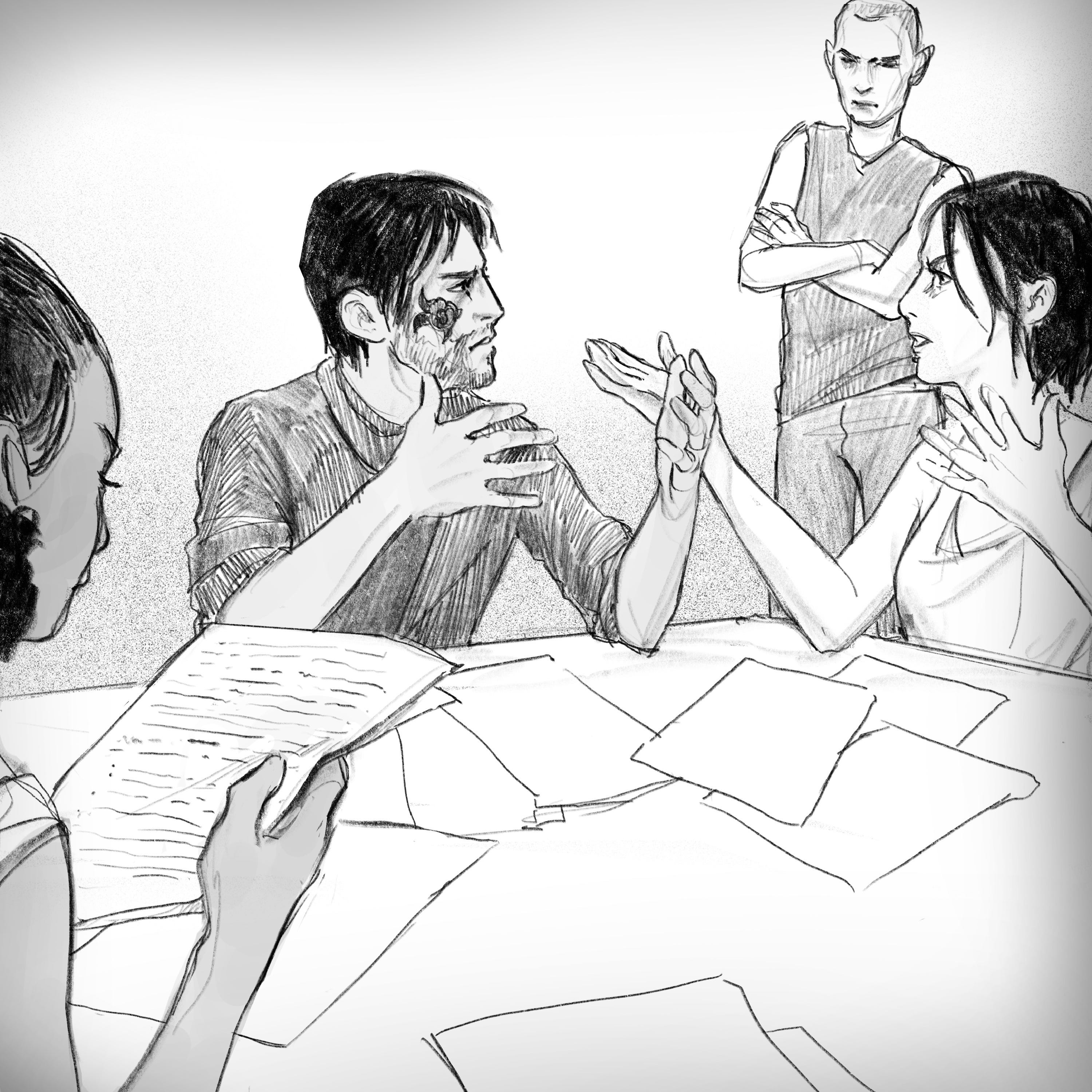 Was sagt ihr dazu? Wir sind ehrlich gesagt total gespalten. Auf der einen Seite klingt das nach der Erfüllung vieler Träume, die wir unausgesprochen mit unserer Musik verfolgen. Andererseits habe ich bei Mister Augenklappe einfach ein schlechtes Gefühl. Ich habe ihn eindeutig erkannt und ich weiß nicht, ob er mich auch erkannt hat. Irgendetwas hat er mit dem Syndikat zu tun und nachdem wir endlich mit Müh und Not Tills Brandmal losgeworden sind, habe ich so gar keine Lust, da wieder reinzurutschen.